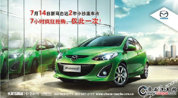 廣西弘駿長(zhǎng)安馬自達(dá)金源店7月14日10:00至17:00新馬自達(dá)2年中抄底車市,7小時(shí)瘋狂搶購(gòu),**一次!新馬自達(dá)2僅85800元起搶!搶!搶!全場(chǎng)僅限4臺(tái),7月14日上午10:00火爆開(kāi)場(chǎng)!詢0771-3225588.