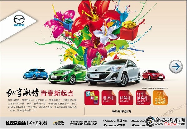 2013年新年新氣象,馬自達(dá)廣西弘駿店“縱享激情•青春新起點(diǎn)”第季四季――愛情季促銷火熱進(jìn)行中。好禮送不停,名額有限,先到先得。