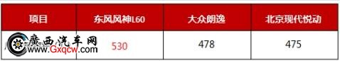 上表的數(shù)據(jù)顯示,在儲物空間方面,東風(fēng)風(fēng)神L60以530L的后備箱容積**大眾朗逸、北京現(xiàn)代悅動(dòng)較多,優(yōu)勢明顯,更加符合家庭用車需求。