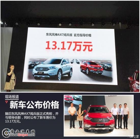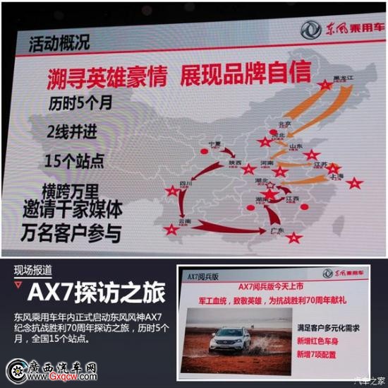 去年11月,東風(fēng)風(fēng)神發(fā)布了旗下首款SUV東風(fēng)風(fēng)神AX7,正式進(jìn)軍SUV市場(chǎng)。為迎接世界反法西斯勝利70周年,有著濃厚軍工背景的東風(fēng)計(jì)劃推出其紀(jì)念版車型。日前,網(wǎng)通社從東風(fēng)乘用車官方獲悉:東風(fēng)風(fēng)神AX7閱兵版正式上市,新車的售價(jià)為13.17萬元。值得一提的是,東風(fēng)風(fēng)神AX7閱兵版是在普通版車型基礎(chǔ)上加了7項(xiàng)配置,并增添了象征勝利的紅色車身。