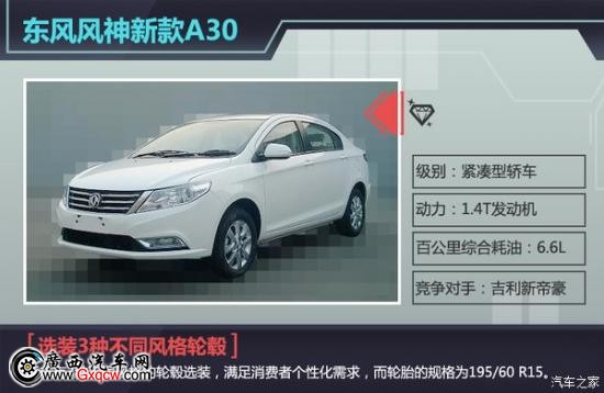 東風(fēng)風(fēng)神新款A(yù)30定位為緊湊型轎車(chē),車(chē)身架構(gòu)采用承載式車(chē)身,尺寸并沒(méi)有變化,車(chē)身長(zhǎng)寬高依舊為4530/1730/1490mm,軸距為2620mm。據(jù)了解,新車(chē)有3種不同風(fēng)格的輪轂選裝,滿足消費(fèi)者個(gè)性化需求,而輪胎的規(guī)格為195/60 R15。