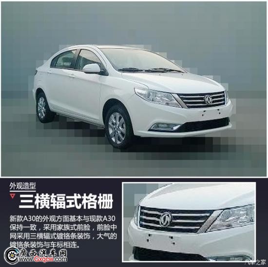 從照片中看,新款A(yù)30的外觀方面基本與現(xiàn)款A(yù)30保持一致,采用家族式前臉,前臉中網(wǎng)采用三橫輻式鍍鉻條裝飾,大氣的鍍鉻條裝飾與車(chē)標(biāo)相連,兩側(cè)較大尺寸的頭燈與中網(wǎng)融為一體,新車(chē)整體風(fēng)格時(shí)尚、精致。