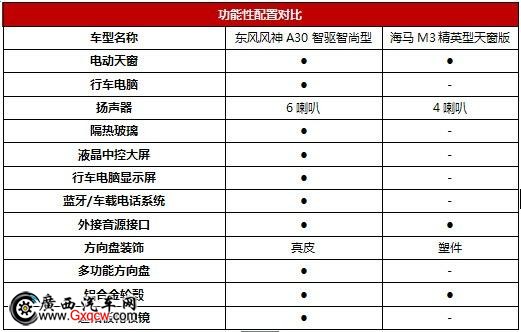 安全:超越同級 A30安全關(guān)懷無微不至 海馬M3在常用的基礎(chǔ)配置上也基本配備,但總體對比來看,還是A30更為實在和豐富。不過這兩款車雖然是家用級別車型,但是絕對可以與更高一級別的合資車抗衡了。