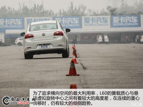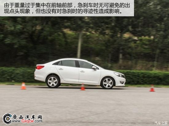 相對于加速,剎車表現(xiàn)則十分出色,39.05米的100-0km/h剎車距離在同級中出類拔萃,這與L60使用的博悅系列輪胎不無關(guān)系。連續(xù)十組剎車測試中,剎車沒有出現(xiàn)熱衰退,剎車G值曲線平穩(wěn),ABS的動作平穩(wěn)有效。與近似平臺的很多車型一樣,由于重量過于集中在前軸前部,急剎車時無可避免的出現(xiàn)點頭現(xiàn)象,但也沒有對急剎時的尋跡性造成影響。